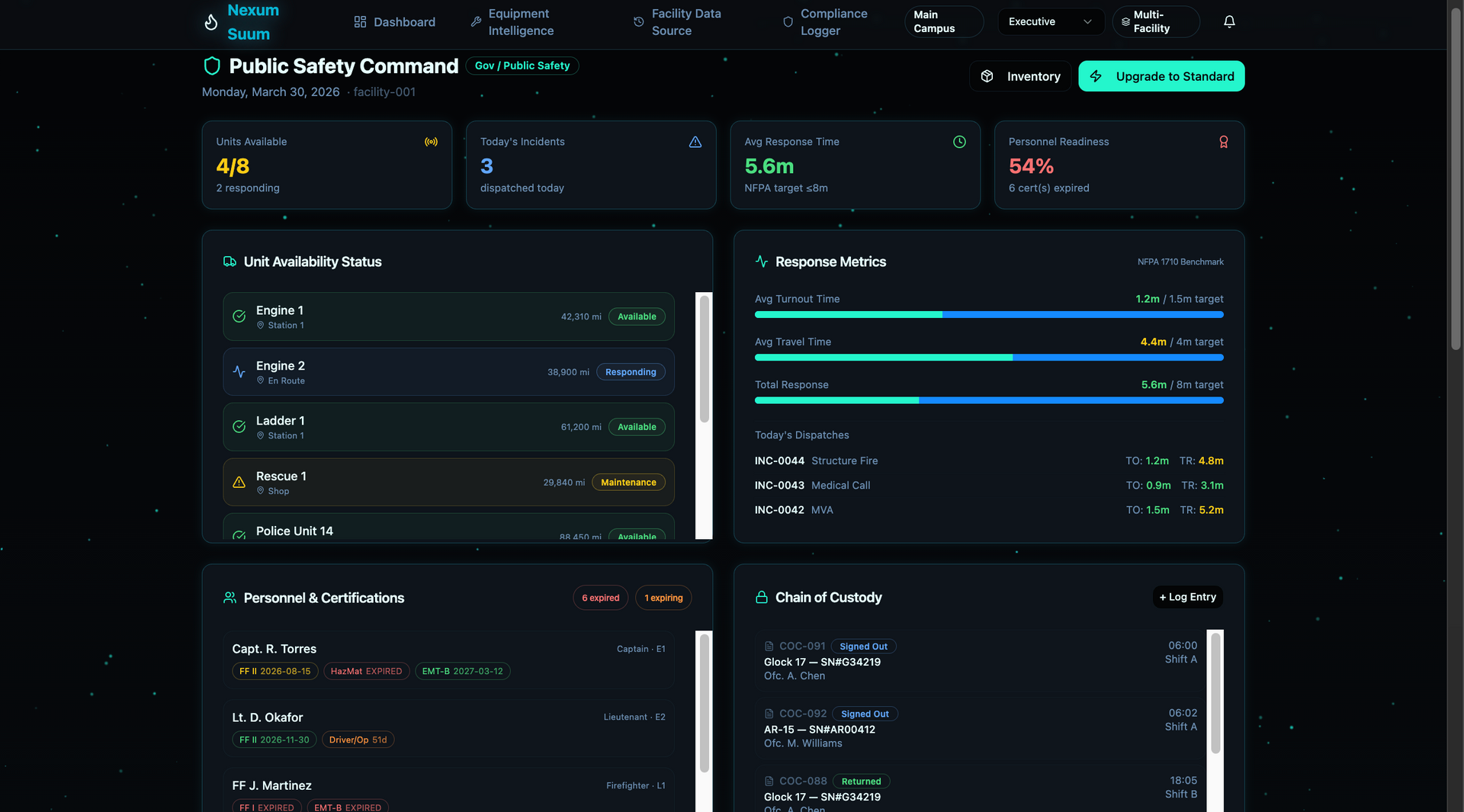 Gain full visibility and control across public safety operations, facilities, and compliance systems.